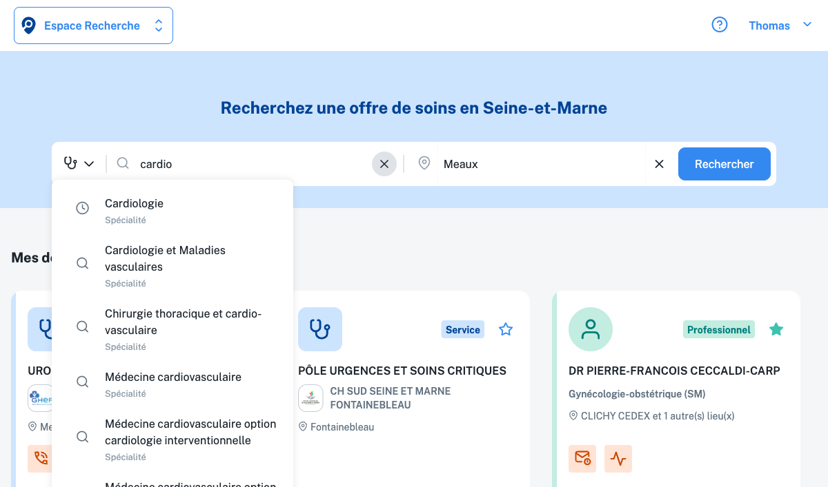 Règle simple : plus vous ciblez précisément, plus la liste de résultats est courte mais pertinente. Si vous ne trouvez rien, élargissez progressivement (Unité → Activité → Spécialité).